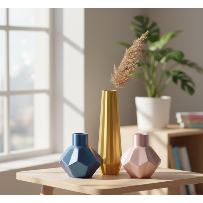 Bambu Lab P1S'in hassas katman teknolojisiyle üretilen, ışığı kıran geometrik hatlara sahip modern dekoratif vazo. İpek dokulu (Silk) premium filament kullanılmıştır. Ev ve ofisleriniz için minimalist şıklık.